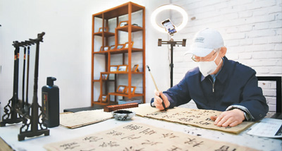 2020年4月15日,78岁的北京市民宫体灵录制字帖临摹教学视频,为丰富防疫期间居民文化生活尽一份力。优质免费网络课程的存在,为知识付费模式提出了更高要求。新华社记者 彭子洋摄
