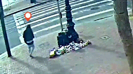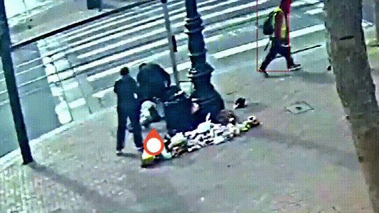 杰金斯被打之后,衣衫不整走在街上。当时老太在一个十字路口,面前摆了一地东西,貌似在摆地摊。杰金斯经过时,依然遭到旁边一个黄色衣服的人追打。随后黄色衣服人士离去之后,杰金斯突然挥拳,打向附近的老太,将其帽子打飞。