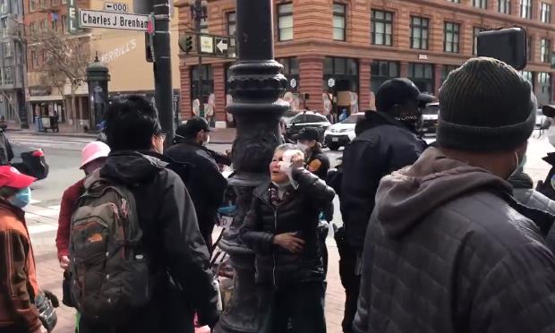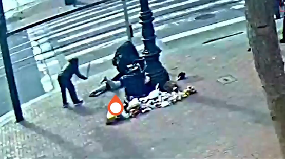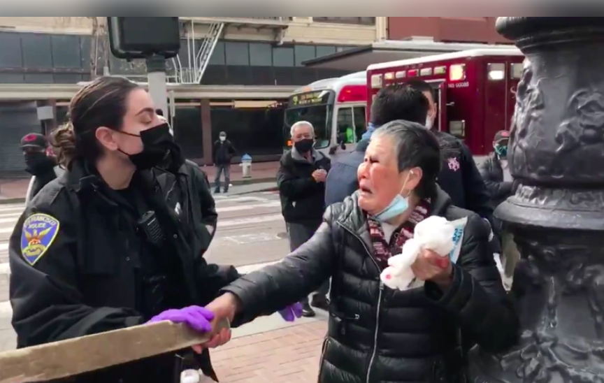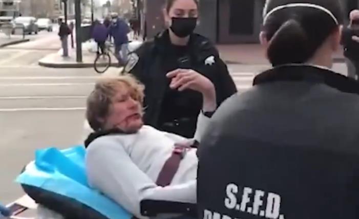 海外网4月9日电 日前在美国旧金山街头,76岁华裔老太谢萧珍遭白人男子无端殴打,被迫反击。她手持木棍,与躺在担架上头破血流的嫌犯同框,引发舆论热议。近日,嫌犯的律师公布监控视频,还原了华裔老太“反杀”的现场一幕。