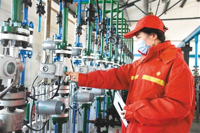 日前,在大庆油田第二采油厂第七作业区南三东三元转油配注试验站,工作人员在记录数据。 新华社记者 杨 喆摄