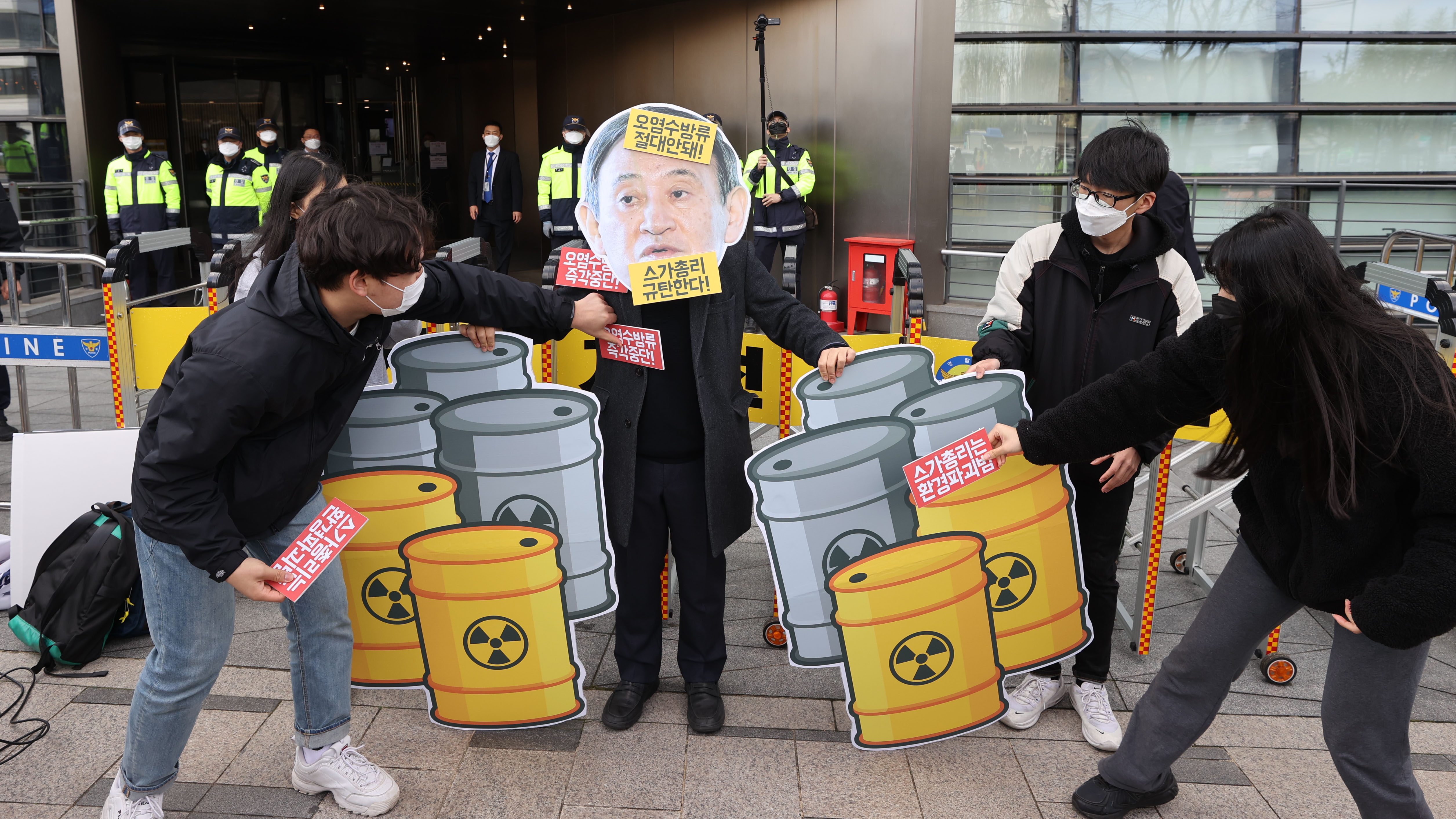 海外网4月13日电 13日上午,在日本驻韩大使馆前,韩国“首尔青年气候行动”和“青年多乐”等多个团体召开记者会,抗议日本政府决定将核废水排海。