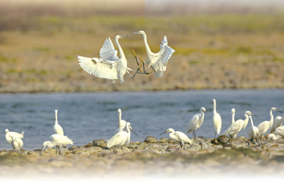 栖息在桂林南郊漓江卫家渡的白鹭。