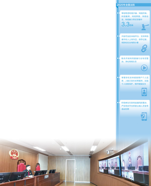 “严惩一批网络黑灰产业链犯罪,决不让网络空间成为法外之地。”“通过依法公正裁判为数字经济发展和技术创新明晰规则,引导新技术新业态新模式在法治轨道上健康有序发展。合理确定平台责任和行为边界,促进平台经济、共享经济依法规范发展。”今年全国两会上,最高人民法院工作报告有关网络空间司法治理的内容引发关注。