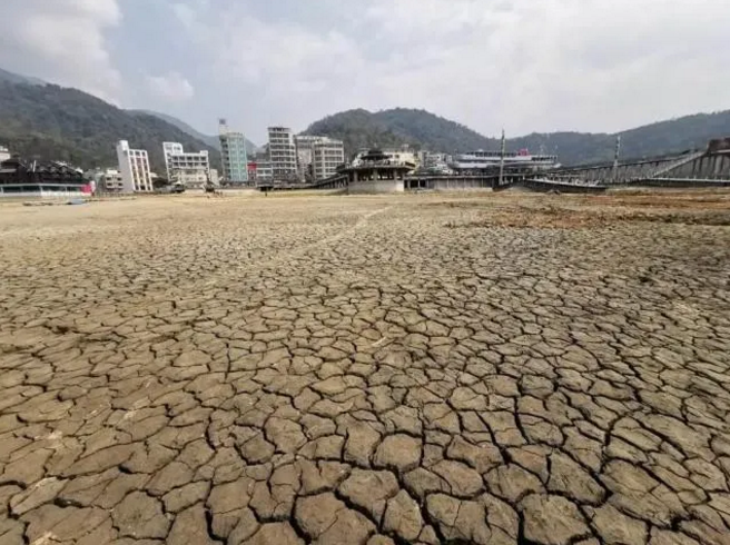 日月潭底整片土地龟裂(图源:中时新闻网)