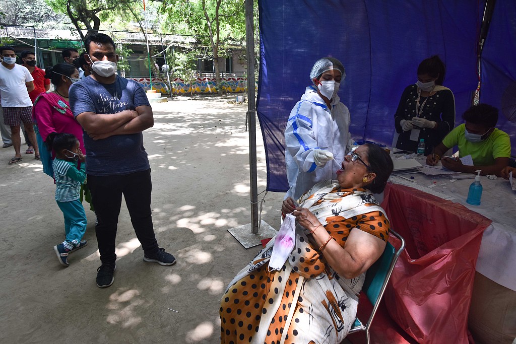 印度新德里医生为民众检测新冠病毒