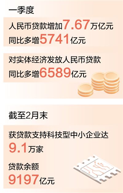 截至2月末,获得贷款支持的科技型中小企业达9.1万家,贷款余额9197亿元,比年初增长4.37%。