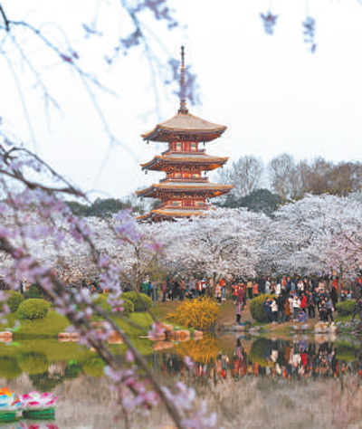东湖樱花园游人如织。彭 冲摄