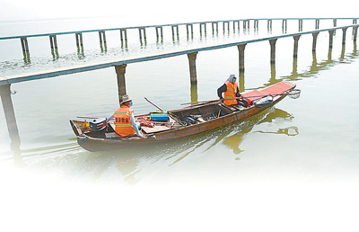 10年前,宋四友还是武汉市东湖渔场的一名职工。“我18岁就跟着父亲在东湖捕鱼,那时湖底水草丰茂,全湖每年产鱼三四百万斤。后来水草越来越少,渔获量也不断减少。”宋四友回忆道。