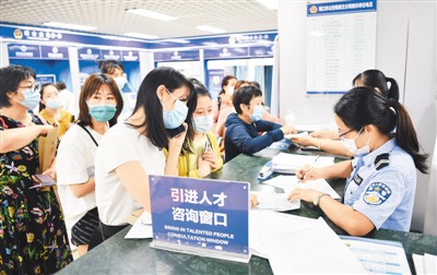 自海南全面放宽落户限制相关政策实施以来,落户海南成了不少人的选择。图为4月2日,外省人员在海南当地人口和出入境管理服务中心办理引进人才落户业务。新华社记者 郭 程摄