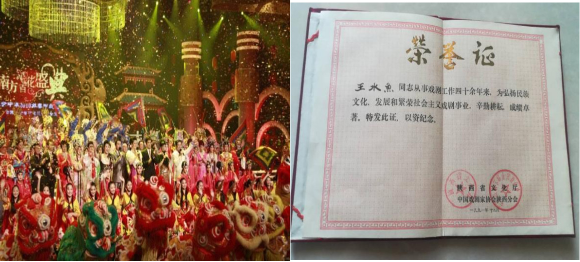 如今,由他亲手培养的青年演员己成为戏曲舞台上的台柱子,先后涌现出了一批优秀的中青年演员。如著名演员陕西省《西凤杯》秦腔大赛一等奖获得者李发牢、《西凤杯》秦腔大赛一等奖获得者田拴宝,陕、甘、宁三省区举办的《名师高徒》秦腔擂台赛优秀演员何乖翠等。一九九八年十月一日,陕西省文化厅、在全省范围内召开表彰大会,表彰了一批为戏曲事业辛勤耕耘并具有突出贡献的名老艺人,王水鱼同志成绩斐然,亲自参加大会并受到了表彰。