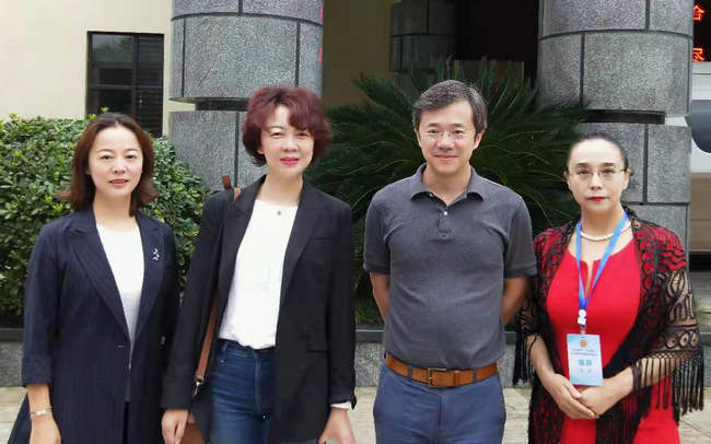 中国侨联信息传播部林萧凡处长(右二),四川省侨联副主席、绵阳市侨联主席蒋蓓(左二),绵阳侨联副主席范华(左一)和澳华电视传媒ACTV副总编惠星一起交流合影