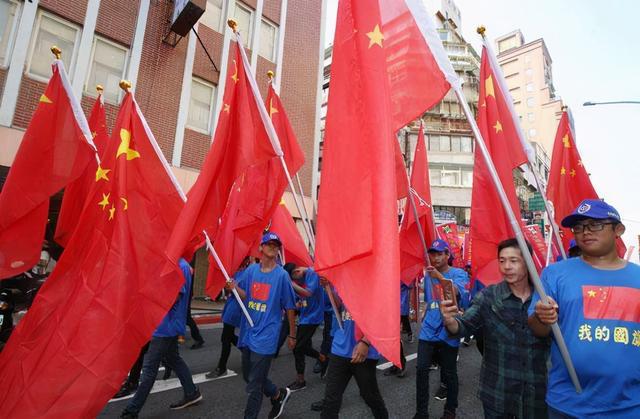 台民众手举五星红旗参与游行(图源:台媒)