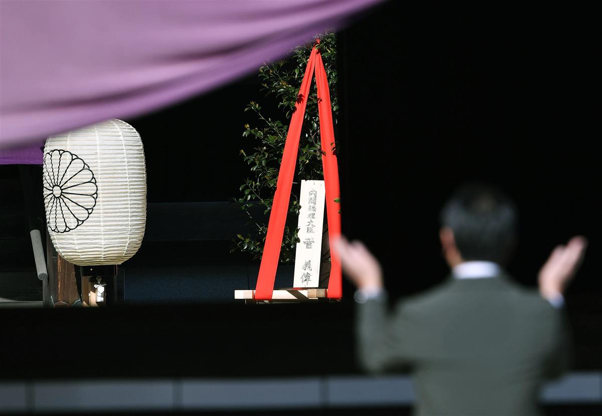 4月21日,日本首相菅义伟以“内阁总理大臣”名义向靖国神社供奉“真榊”祭品。(图/产经新闻)