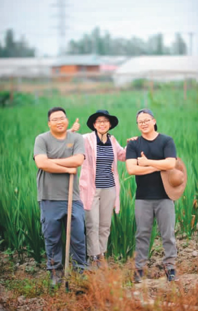 何耀顺(左)和团队成员在佛山贤鲁岛的台湾新农业示范基地耕作。 (受访者供图)