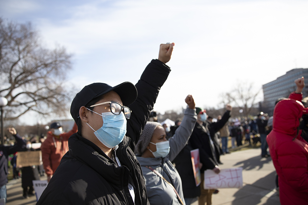 资料图:美国民众举行“反对亚裔仇恨”抗议。