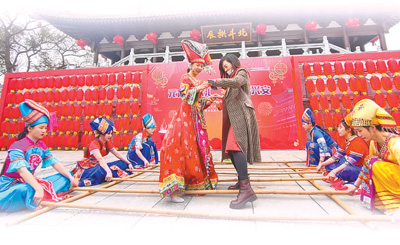 游客在魁星楼景点参与互动游戏。罗飞霞摄(人民视觉)