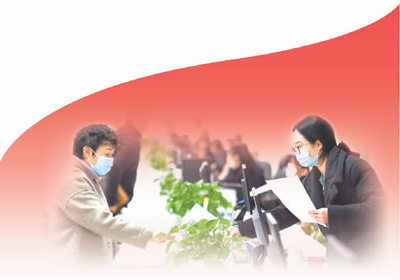 2021年2月18日,在湖北省荆州市政务服务中心,工作人员在为群众办理事项。黄志刚摄(影像中国)
