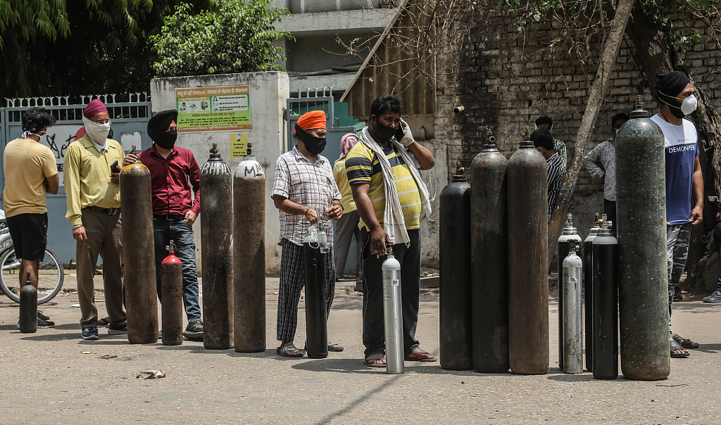 海外网5月6日电 近日,印度新德里3名男子涉嫌拿灭火器当氧气瓶售卖遭到逮捕,他们趁目前印度国内氧气供不应求,在给灭火器喷漆后,以高昂的价格卖给新冠肺炎患者。