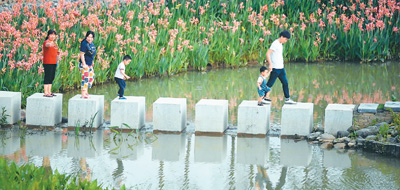 “五一”假期,广西柳州市柳东新区滨江生态公园正式对外开放,柳江河畔昔日的荒草滩变身生态公园,成为人们休闲健身的好去处。图为5月3日,游人在滨江生态公园里游玩。 黎寒池摄(新华社发)