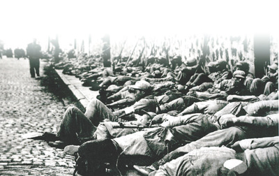 攻入上海市区后,解放军战士露宿街头。资料图片