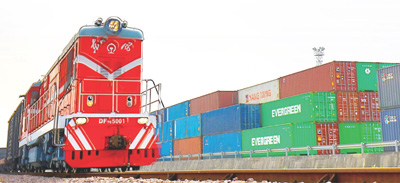 2021年2月15日,“义新欧”中欧班列从义乌铁路西站驶出,开往西班牙马德里。龚献明摄(人民视觉)
