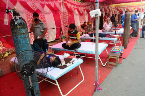 印度加济阿巴德,患者在病床上吸氧(资料图)