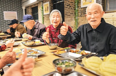 近年来,山东省荣成市建立“信用管理+志愿服务+暖心食堂”模式,打造“暖心食堂”。目前已开办运营363家,覆盖全市46%的村居,免费给1.2万名80周岁以上农村老人提供午餐。图为老人在夏庄镇甲夼马家村“暖心食堂”就餐。