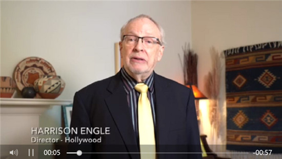 曾7次担纲奥斯卡晚会导演的哈里森·恩格尔在视频(如上截图)中说:“能够祝贺我的朋友黄建南先生,我感到非常高兴!我知道北京国际艺术中心将举办您的精品展览。我相信对于您和所有来访者来说,这将是一次非常特殊的活动。希望能看到您的出色作品。”