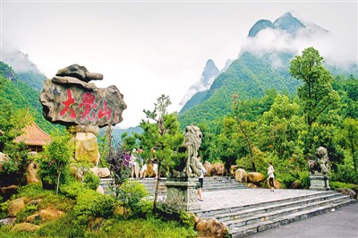 游客在江西省抚州市资溪县大觉山旅游景区内观光。