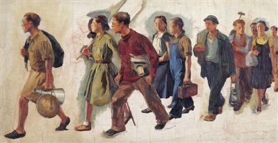 在抗日救亡的洪流中,许多专业美术工作者走出画室,走到前线、边区,自觉将艺术视野转向硝烟弥漫的战场和条件艰苦的后方,用画笔和刻刀记录下战士、农民、工人、学生等众志成城、全力抗战的故事。