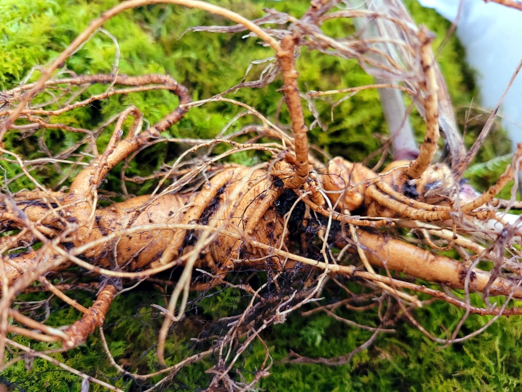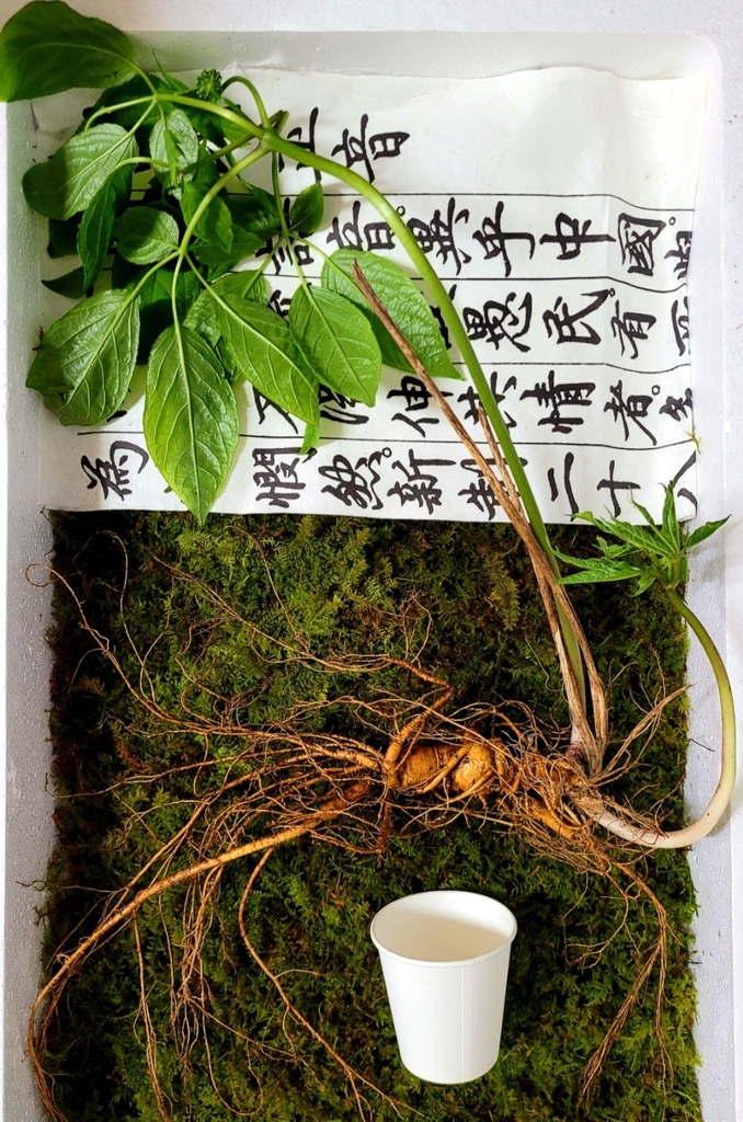 韩国传统采参人协会10日表示,这棵野人参根部长63厘米,重68克,属于“超大型”。(海外网 刘强)