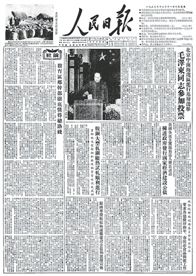 一九五三年十二月十一日出版的人民日报头版。 资料图片