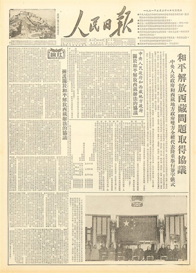 1951年5月23日,中央人民政府与西藏地方政府签订《关于和平解放西藏办法的协议》,宣告西藏和平解放。5天后的人民日报,用3个整版报道了这个好消息。