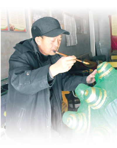 左明新在制作火狮子。