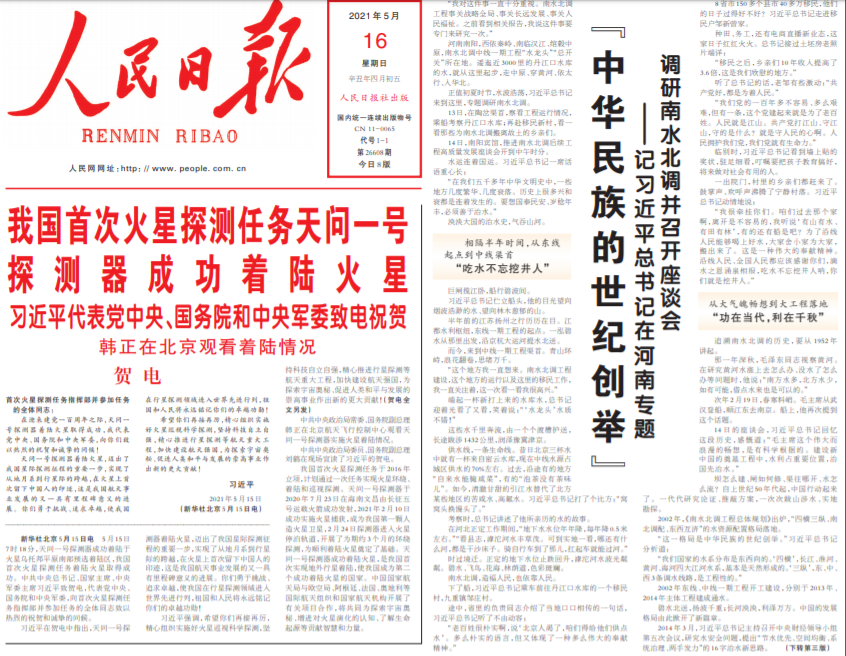 今天出版的《人民日报》头版刊发文章《“中华民族的世纪创举”——记习近平总书记在河南专题调研南水北调并召开座谈会》,文章用大量生动的细节传递了很多重要信号。