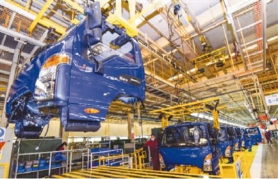 日前,工人在江淮汽车山东青州分公司总装车间生产线上组装生产。 王继林摄(人民视觉)