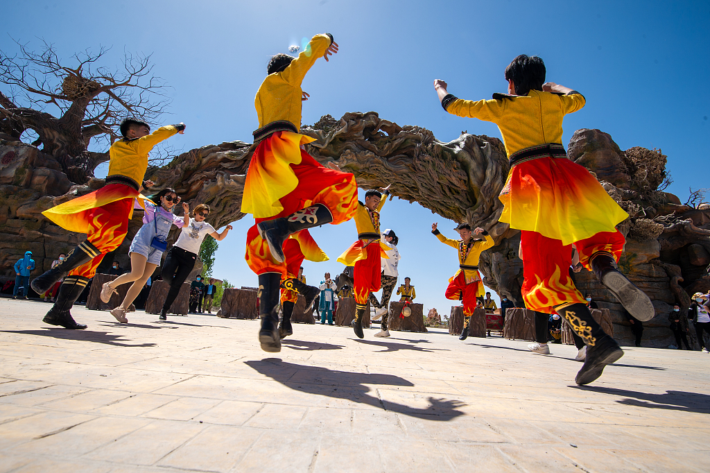 4月28日,新疆喀什,民间艺人表演维吾尔族传统古典音乐。