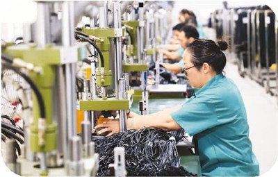 5月14日,湖南省资兴市经济开发区创新创业园福瑞康电子有限公司内,工人们正在赶制产品订单。 李 科摄(人民视觉)