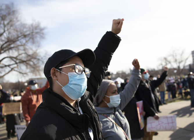 美国民众举行“反对亚裔仇恨”抗议活动。