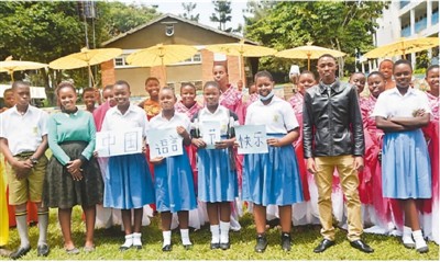 日前,乌干达卢韦罗区内德杰中学的学生庆祝“联合国中文日”。 新华社发