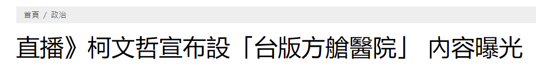 报道称,柯文哲说,现在需要有些旅馆专门收容快筛阳性、PCR阳性确诊者,让他们留在那里观察,不然全放在医院会搞垮(医疗系统),因此将防疫专责旅馆变成“加强版防疫专责旅馆”,就是集中检疫所,将症状不明确的确诊者,由医护人员监看,现在已有四间旅馆,陆续会有大型的防疫旅馆也会转成这种“加强版旅馆”,坦白讲就是“台湾版的方舱医院”。