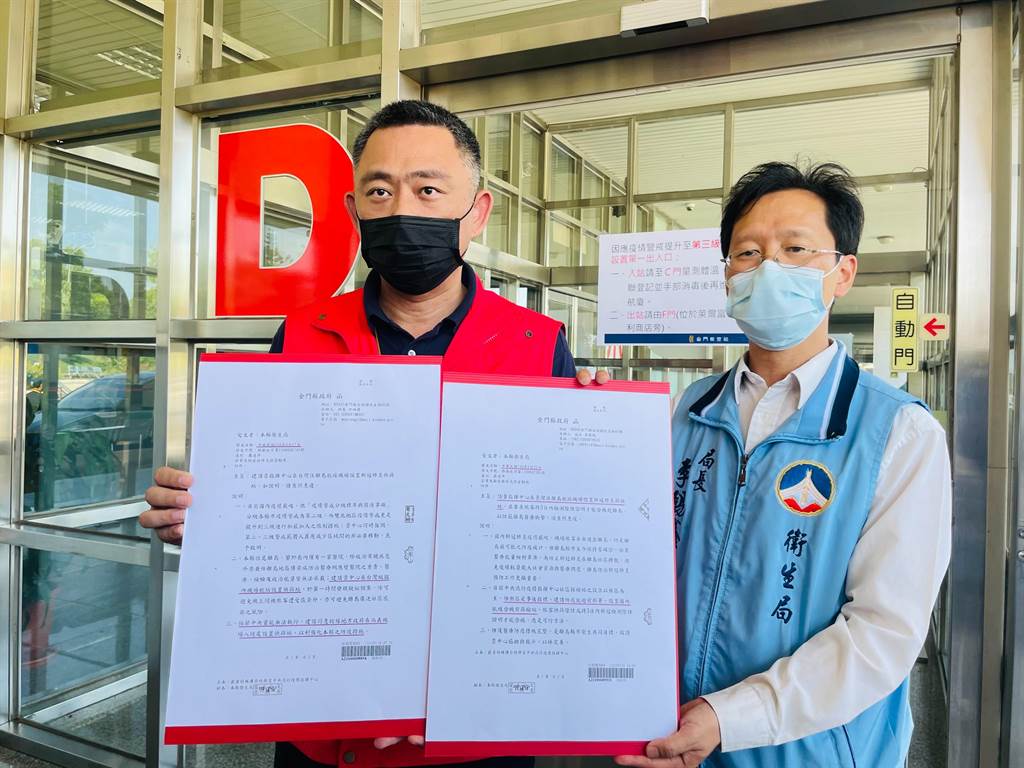 杨镇浯展示5月17日发函台湾流行疫情指挥中心的公文。(台湾“中时电子报”)