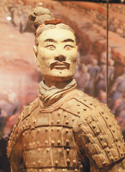 秦始皇帝陵出土绿面跪射俑