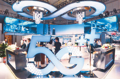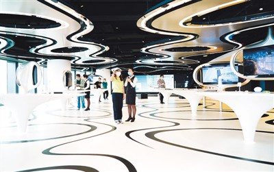 在疫情防控常态化的形势下,北京市抓住数字经济的发展机遇,推动经济稳步复苏向好。图为观众在北京丽泽商务区5G实验室体验一款基于5G的工业AR巡检头盔。记者 贺 勇摄