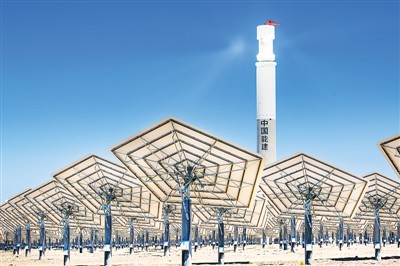 图为5月23日,在新疆哈密市伊吾县淖毛湖镇戈壁上的光热工业园区内,中国能建投资公司投资建设的哈密50兆瓦熔盐塔式光热发电站进行调试定日镜工作。哈密光热项目建成后,预计每年可提供1.98亿千瓦时的清洁电力。