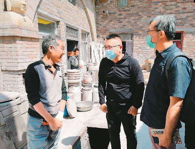 台湾工艺师谷源滔(右)在陈炉镇遇到朋友。