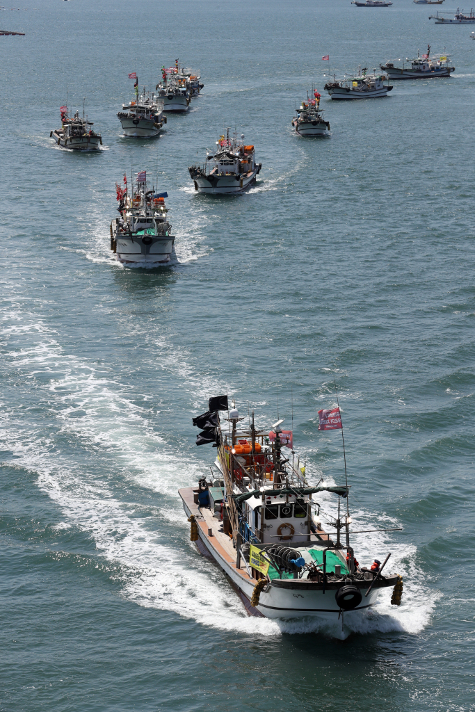 韩国150多艘渔船海上游行,抗议日本排污入海