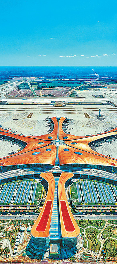 大兴国际机场能够在不到5年的时间里就完成预定的建设任务,顺利投入运营,充分展现了中国工程建筑的雄厚实力,充分体现了中国精神和中国力量,充分体现了中国共产党领导和我国社会主义制度能够集中力量办大事的政治优势
