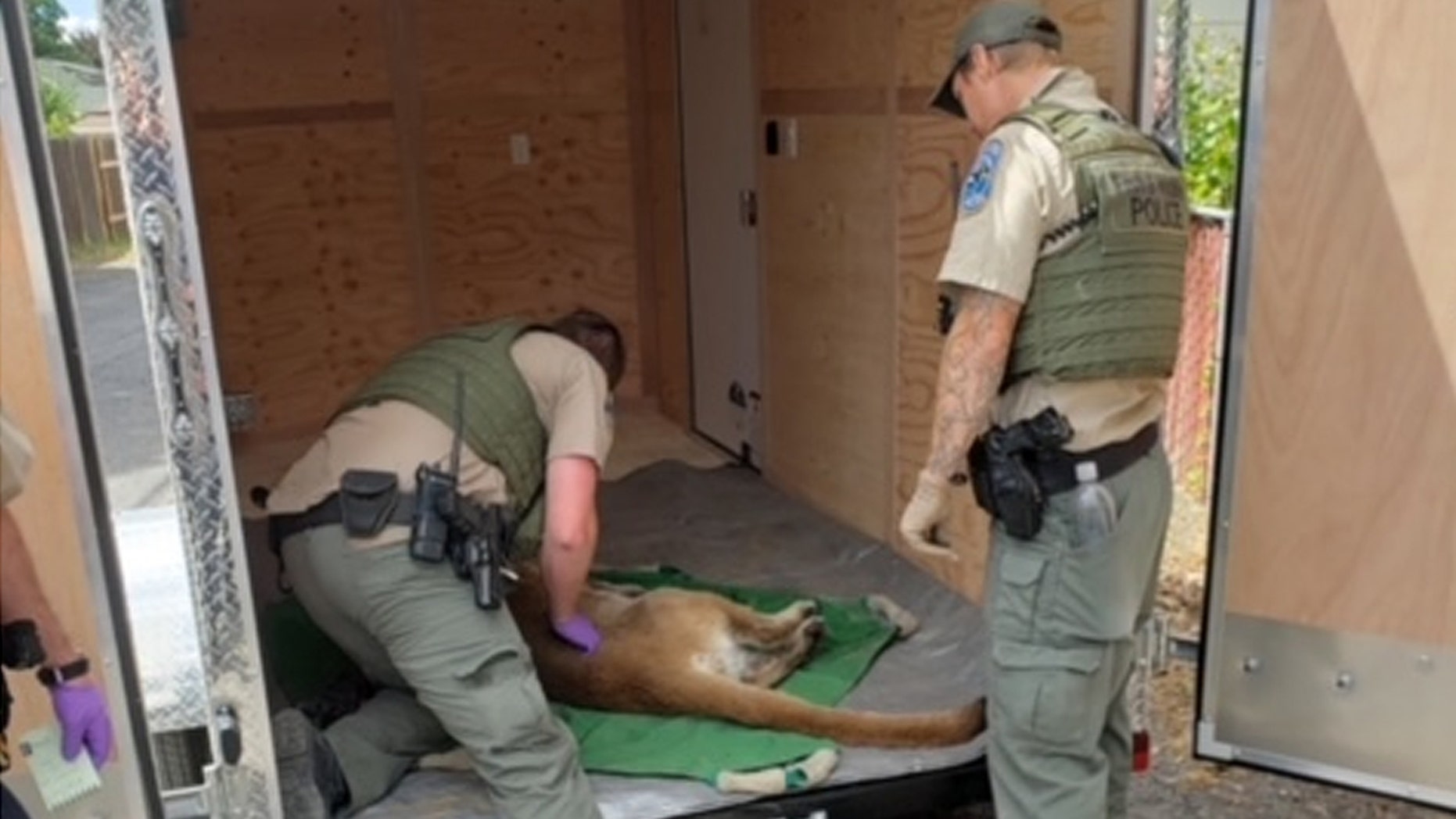 美洲狮闯入美国男子家中 被注射镇静剂后晕倒在
