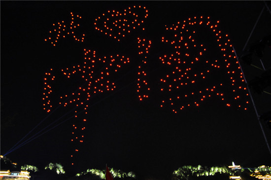 开幕式现场,同时进行了无人机秀表演,500架无人机在黄河上方不断变换造型,展示了“我爱中国”“都会城市·精致兰州”“世纪铁桥·乐响金城”“祖国70华诞”“铁桥110周年”等字样,“点燃”了兰州的夜空,成为音乐节上一道靓丽的风景线。
